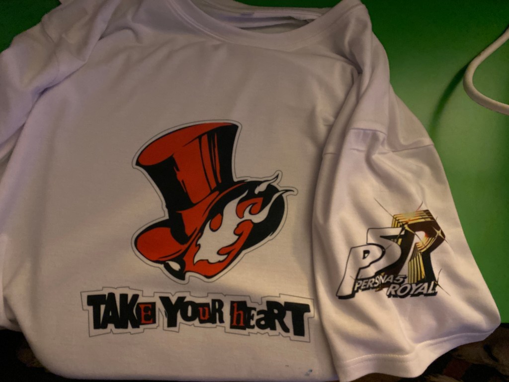 This is one I made for the video game Persona 5 Royal which is on PlayStation 4. I got the P5R logo for the sleeve from the official site for the game, but the hat logo with “Take Your Heart” I got from a reddit post, designed by a user who goes by Goliath25. I like how it turned out.