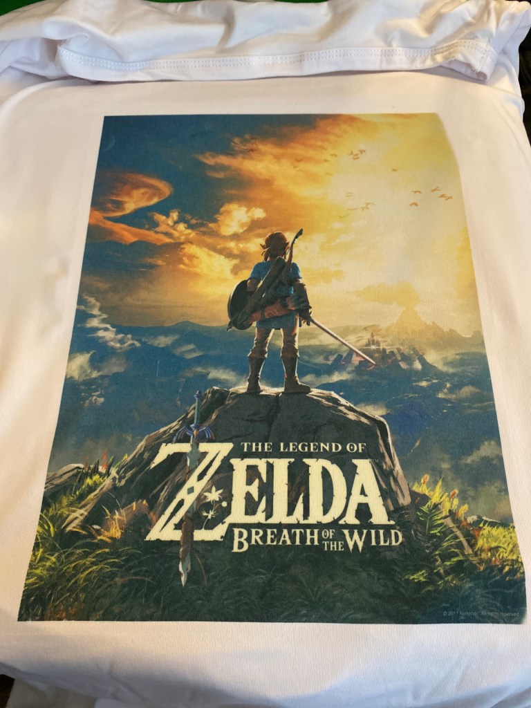 Finally, I went to zelda.com and downloaded a wallpaper file for The Legend of Zelda: Breath of the Wild to make the following shirt: